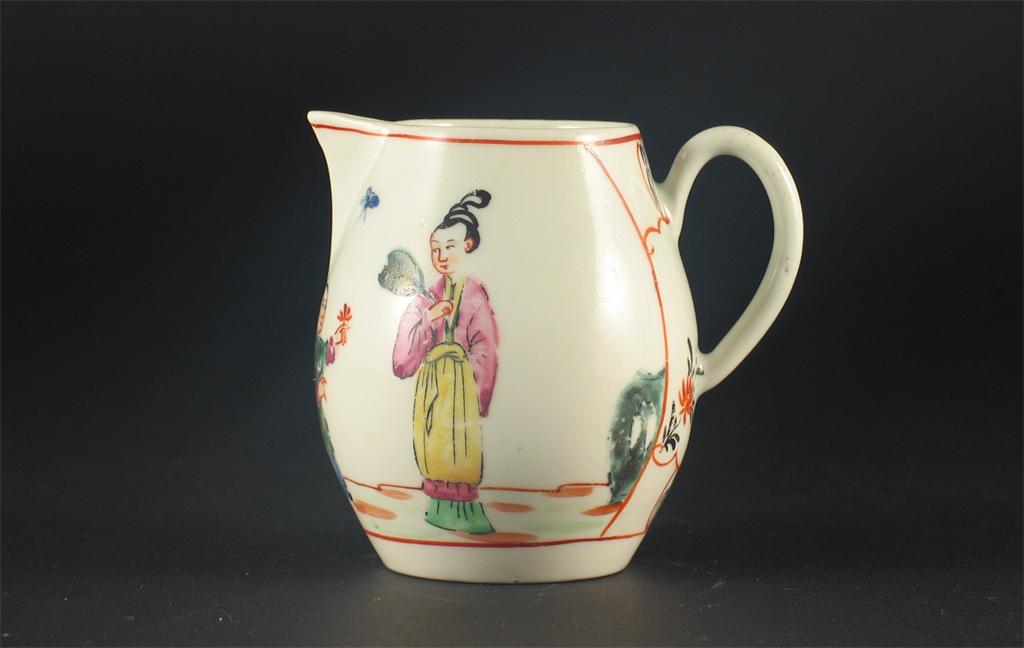 A small Worcester jug, painted with two Chinese figures, unmarked, c.1760-70, 8cm.