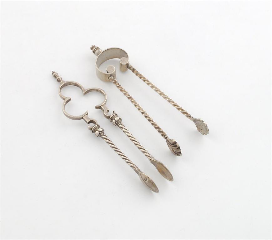 plus a pair of Victorian silver 'andiron' suagr tongs,