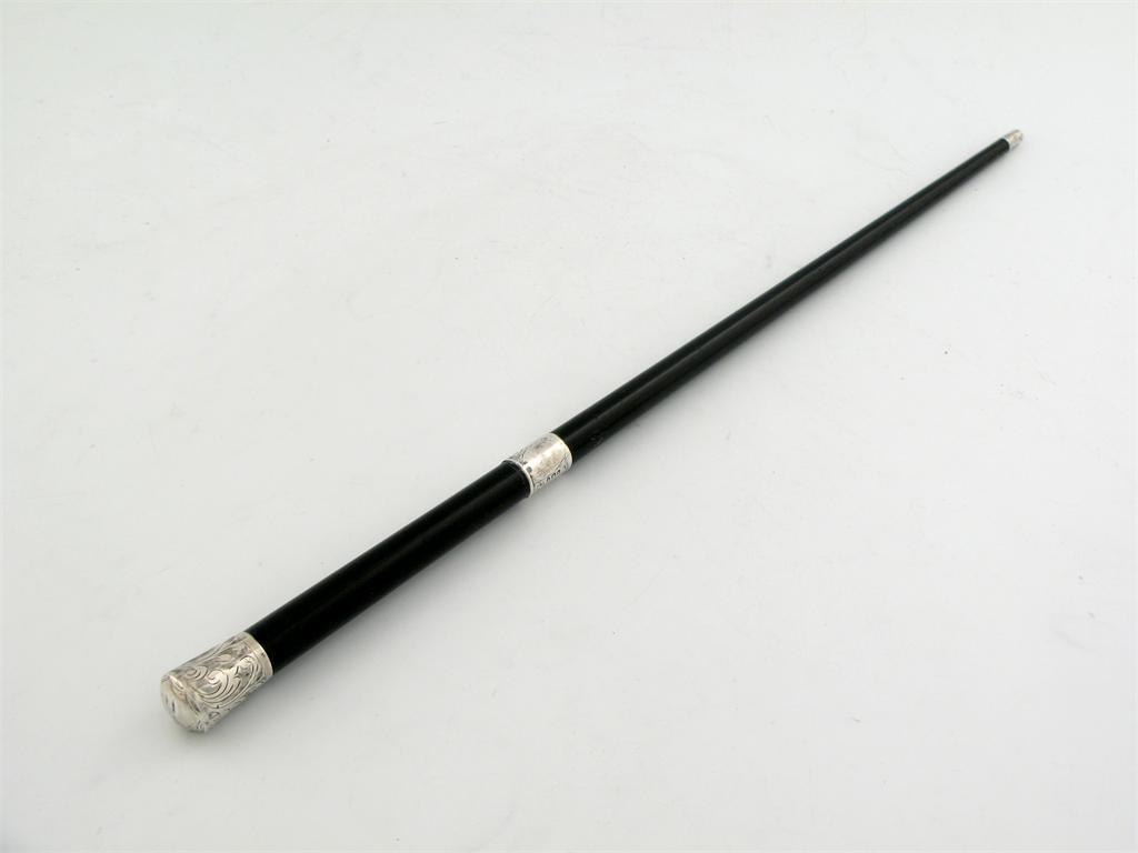 A silver mounted ebony conductor's baton, by E.N, London 1922, tapering form, the mounts with engraved scroll decoration, length 46.3cm.