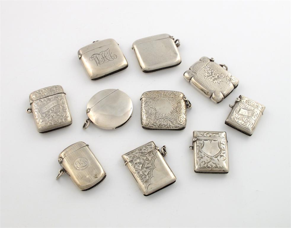 A collection of ten silver vesta cases,