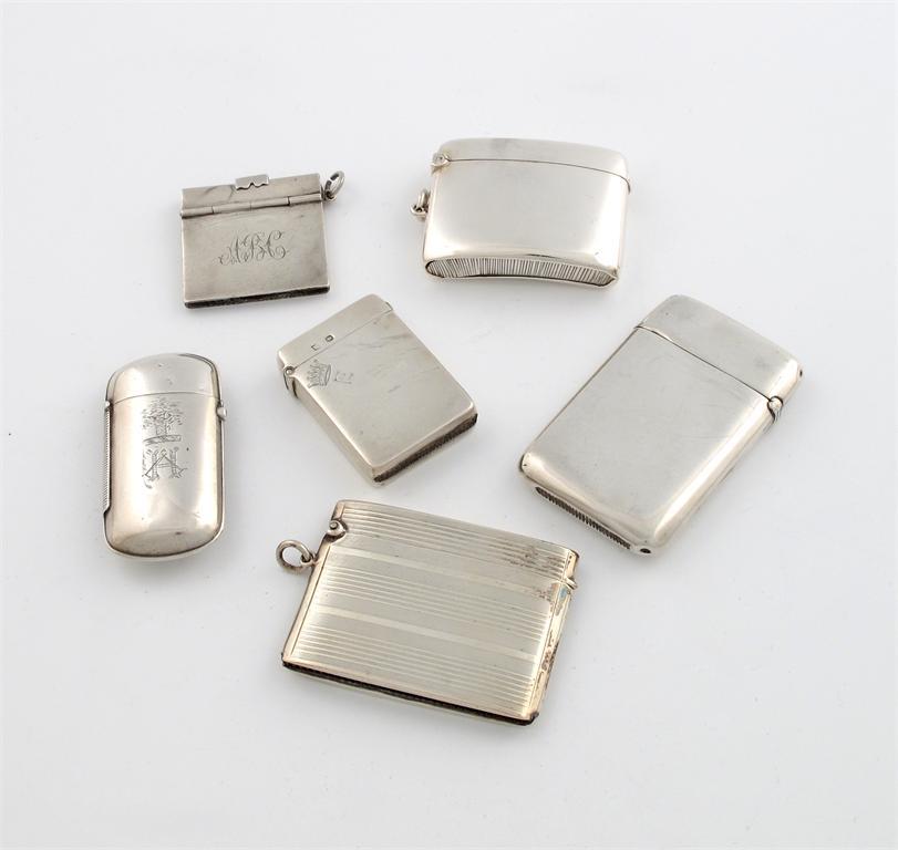 A collection of six silver vesta cases
