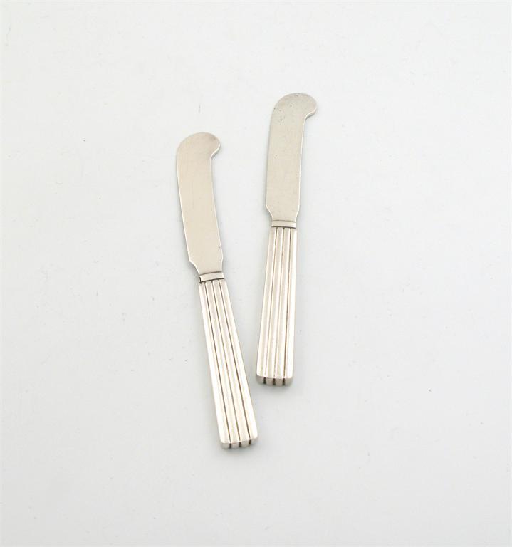 By Georg Jensen, a pair of Danish silver Bernadotte pattern butter knives, designed by Sigvard Bernadotte, approx. weight 2oz. (2)