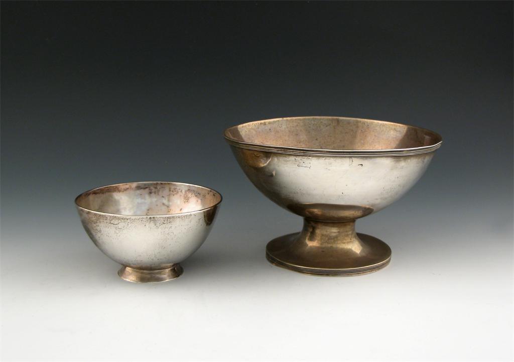 A 19th century silver bowl, maker's mark worn, circular form, reeded border, on a circular foot, plus an unmarked bowl, diameter 18cm. (2)
