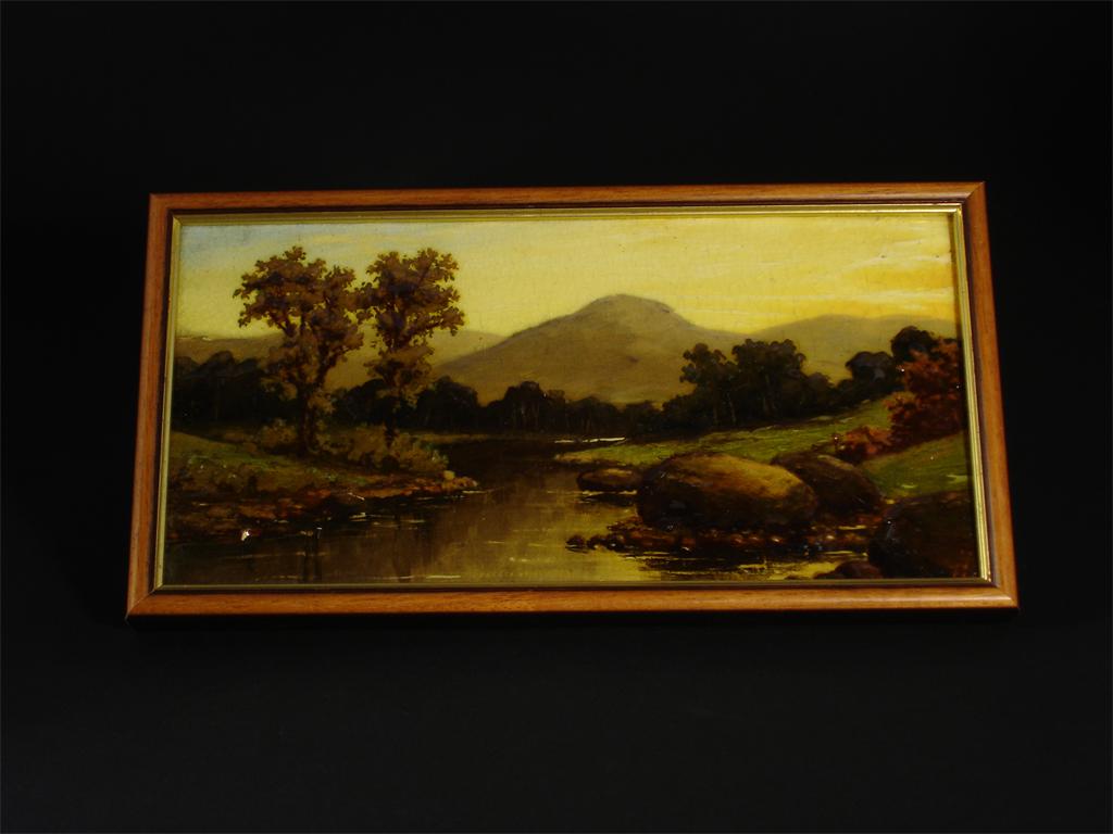 'Buttermere' and 'On The Wharf' two Burmantoft's Faience tile plaques by J H Lorimer