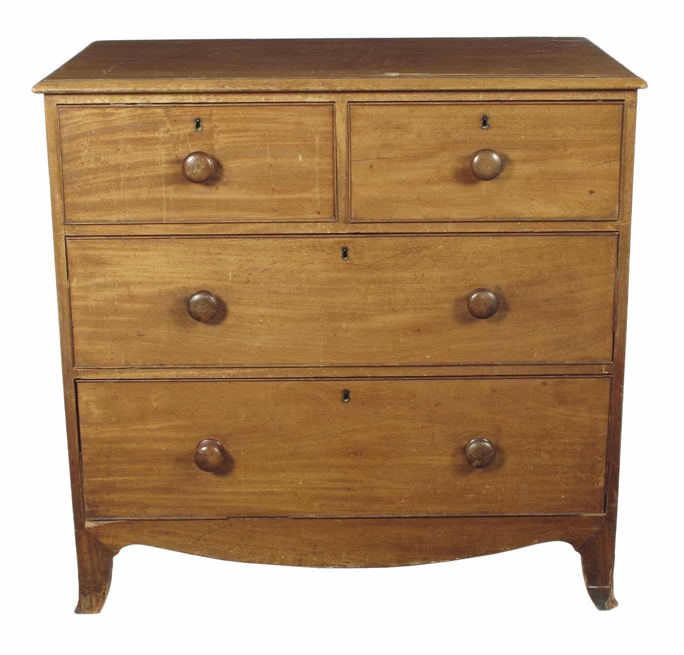 A Victorian mahogany small chest, with two short and two long drawers fitted with knob handles with splay feet, 36.5in (92.5cm) h, 37.5in (95cm) w, 20.5in (52cm) d.