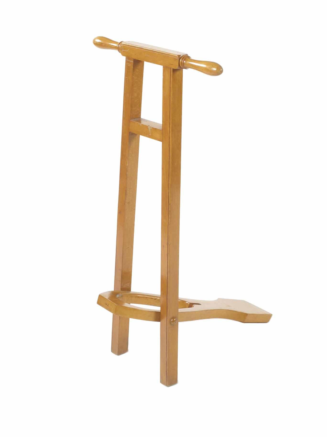A beechwood boot jack, stamped 'MADE IN ENGLAND', 32.5in (82.6cm) h, 16.75in (42.5cm) w.