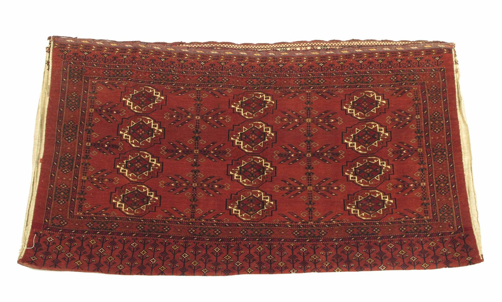 An Ersari Turkman chuval, Afghanistan circa 1920, 40 x 72in (102 x 184cm), the back with undyed plain weave panel of decoration with extra weft wrapping.
