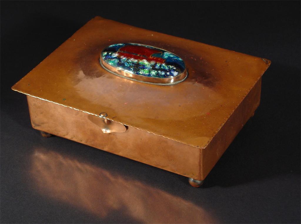A Keswick School of Industrial Arts copper and enamel box and cover rectangular form