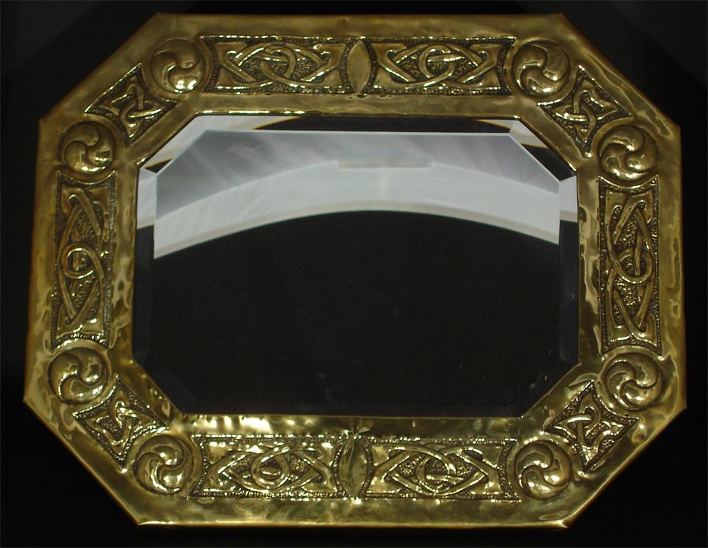 A Glasgow School repousse brass wall mirror octagonal form, with Celtic entrelac border unmarked 60cm. wide