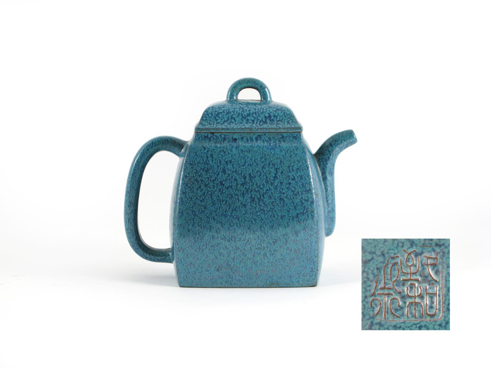 A rare Yixing robin's egg glazed teapot and cover 2nd half 18th century