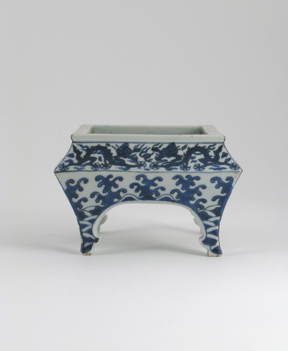 A rare Chinese blue and white incense burner six character Wanli mark within a double rectangle...