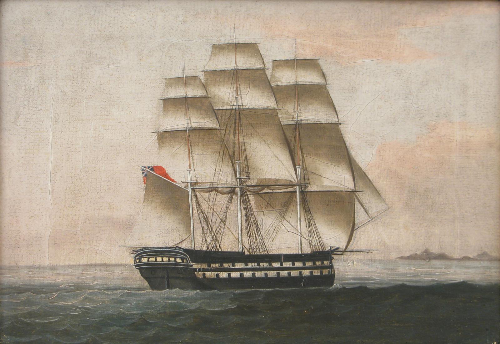 A pair of China Trade paintings of ships 19th century, oil on canvas, 17cm x 25cm. (2)