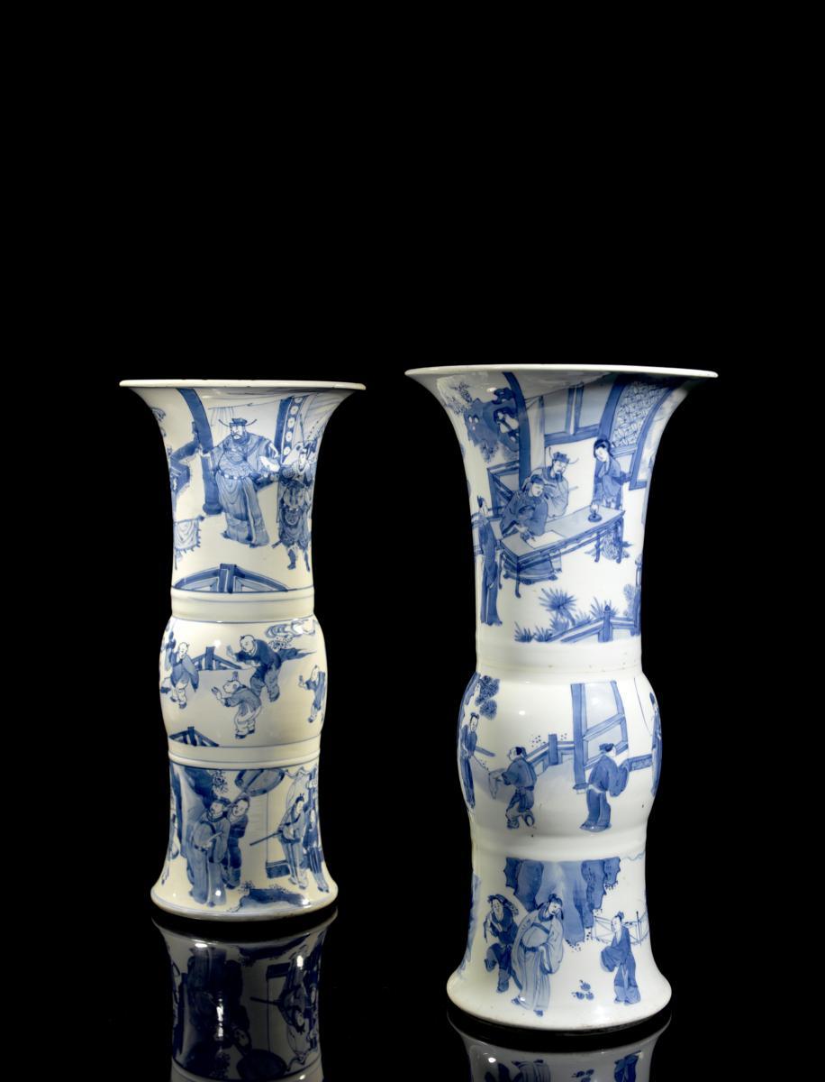 Two good Chinese blue and white gu beaker vases Kangxi 1662-1722