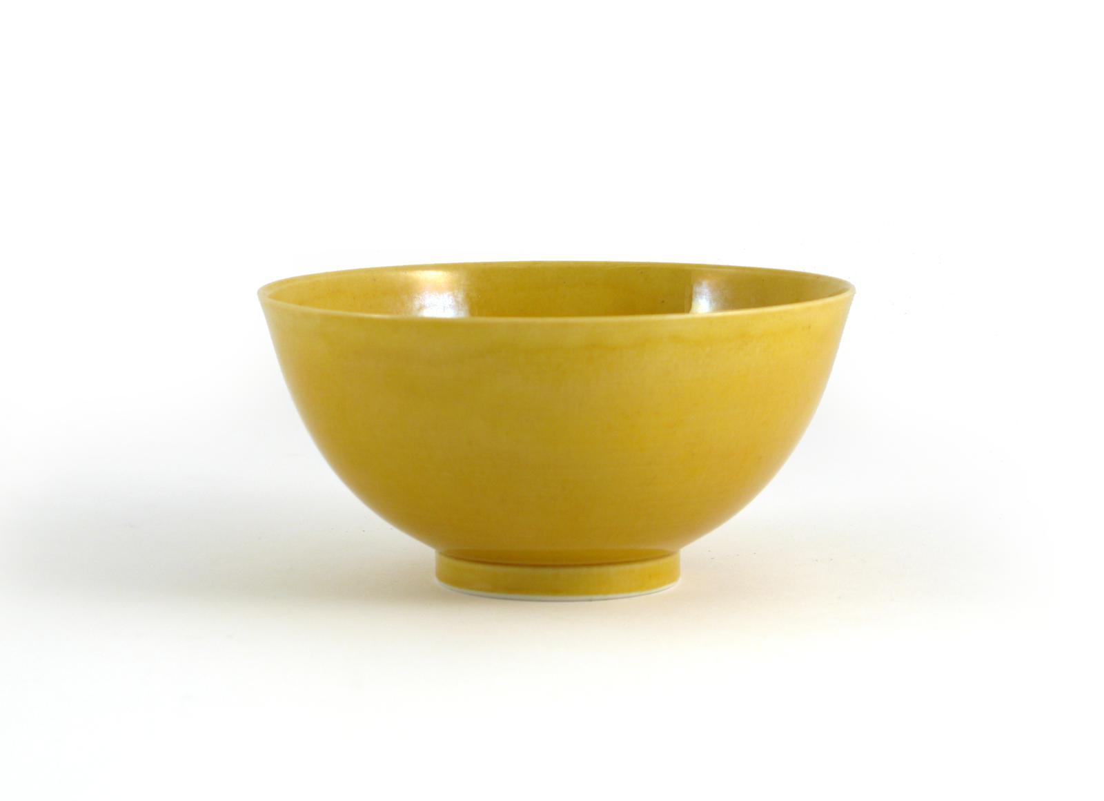 A Chinese yellow ground bowl six character Xuantong mark and of the period 1909-11, 12.6cm.