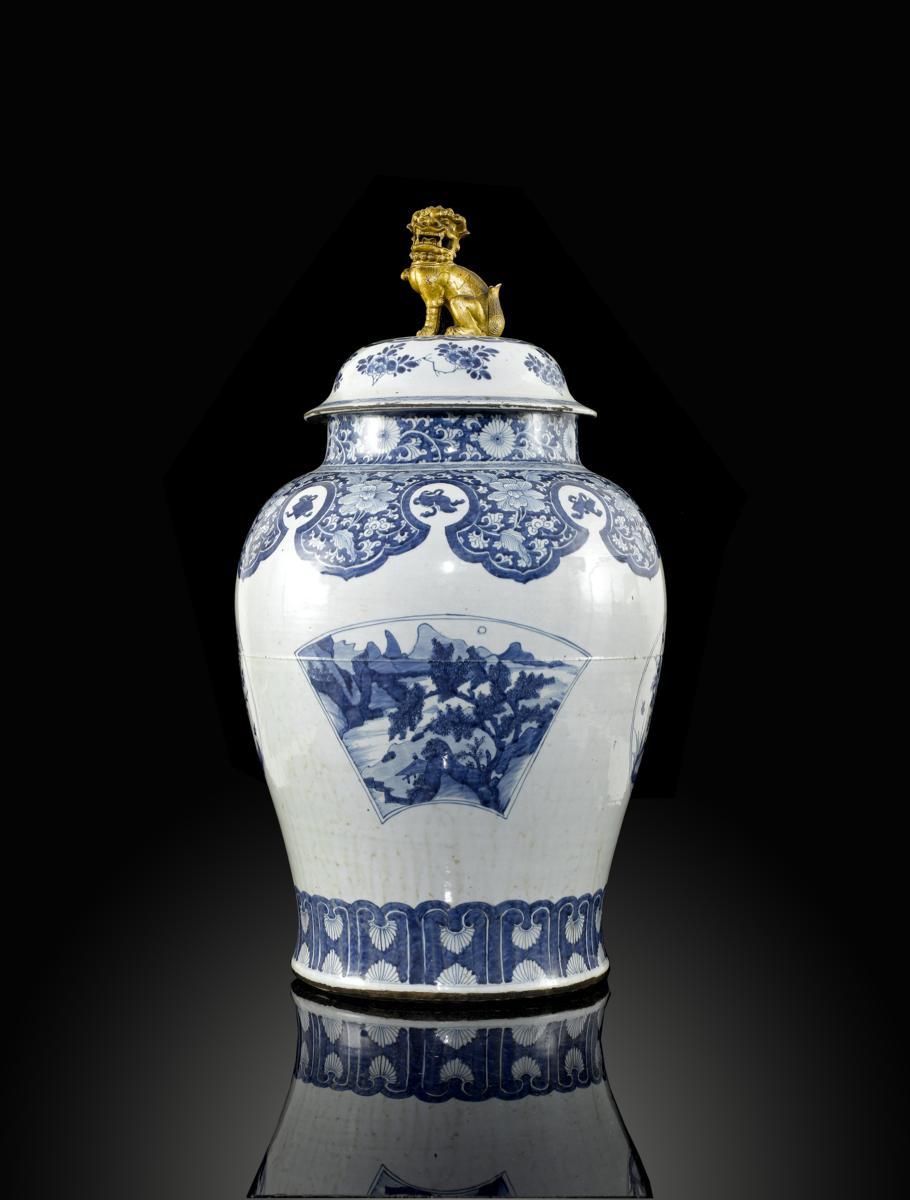 A massive Chinese blue and white baluster vase and cover Kangxi 1662-1722