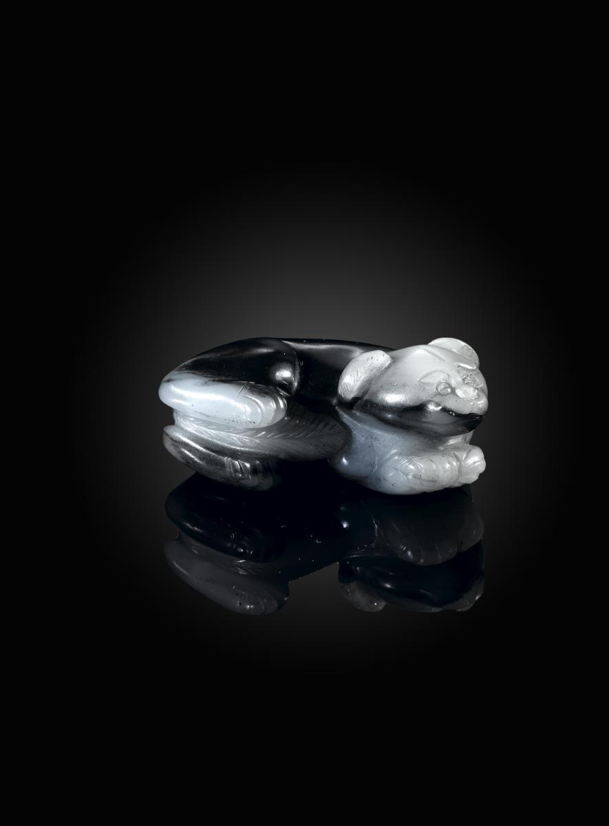 A Chinese grey and black jade carving of a cat 18th century