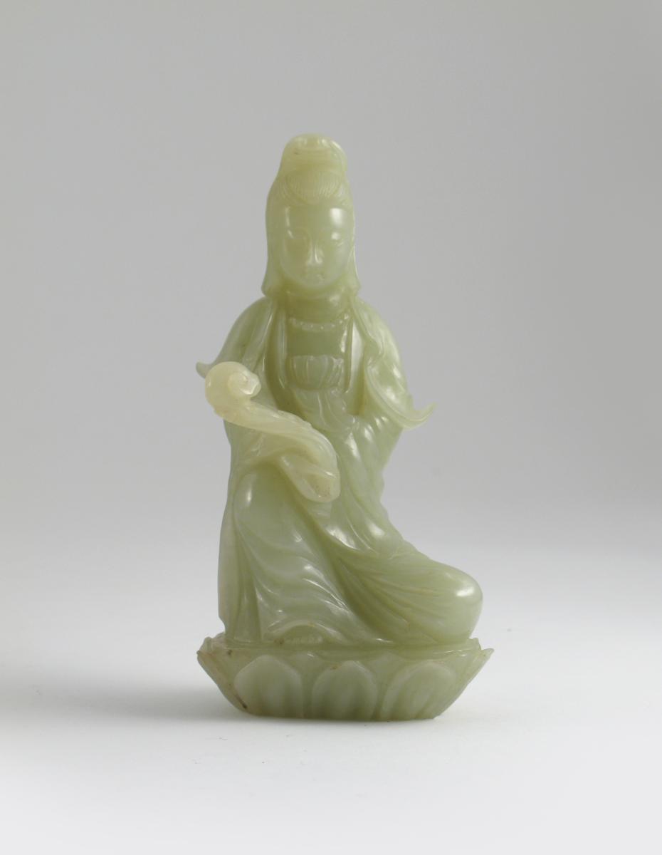 A Chinese celadon jade carving of Guanyin 19th / 20th century