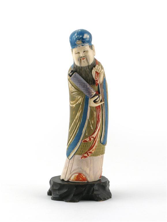 A Chinese painted ivory model of a sage 20th century