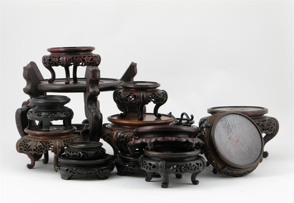 Sixteen Chinese hardwood bowl and vase stands 19th / 20th century