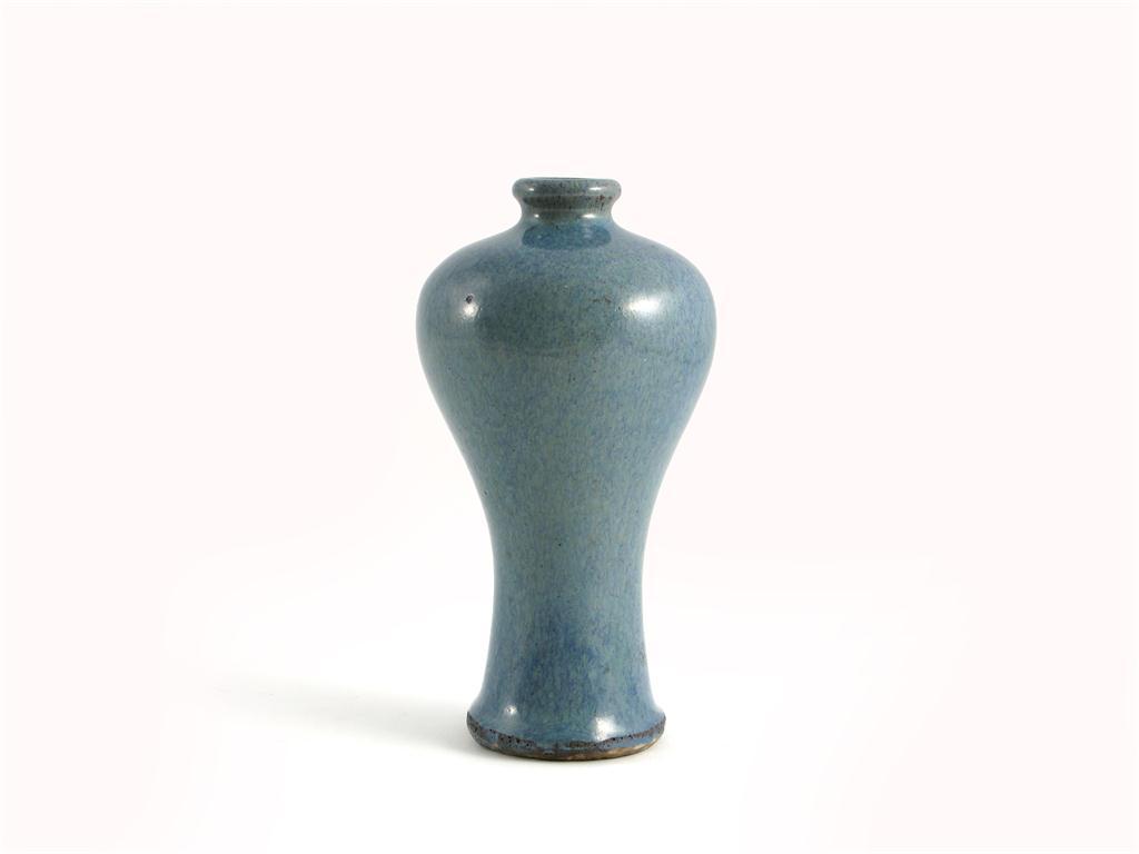 A small Chinese jun yao vase 18th / 19th century, the inverted pear shape decorated with a lavender glaze, 14cm.