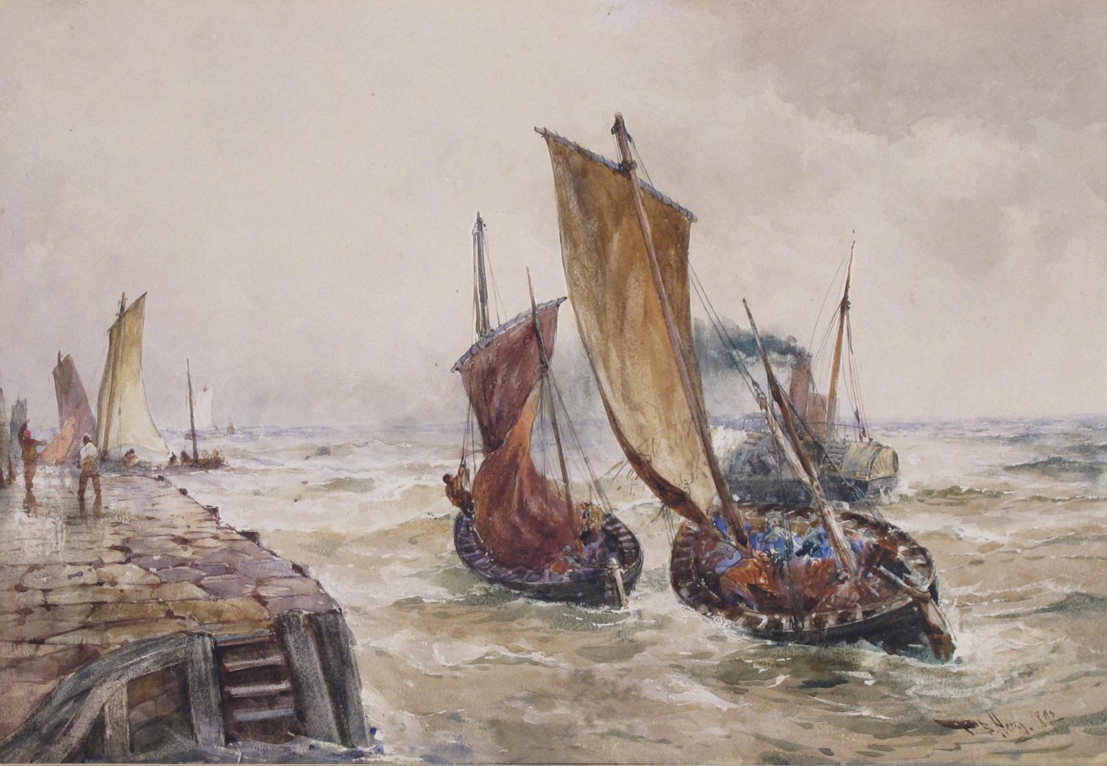 Thomas Bush Hardy (1842-1947) Fishing boats and a paddle steamer leaving harbour Signed and dated...