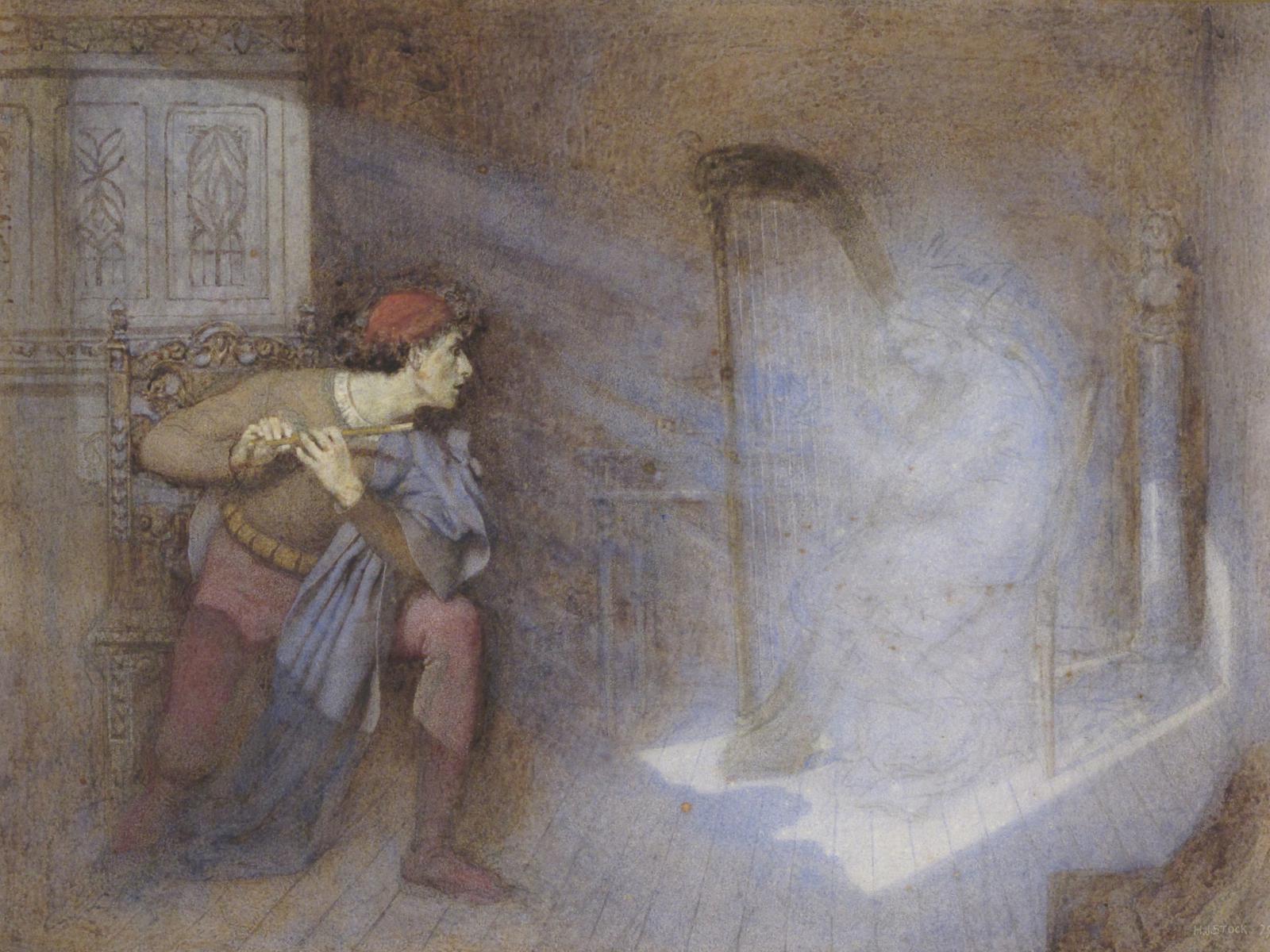 The German Theodor Körner wrote operas, from which this is likely to be a scene and there exists a portrait of him by his aunt Dora Stock. It is unclear whether she is any relation to H. J. Stock.