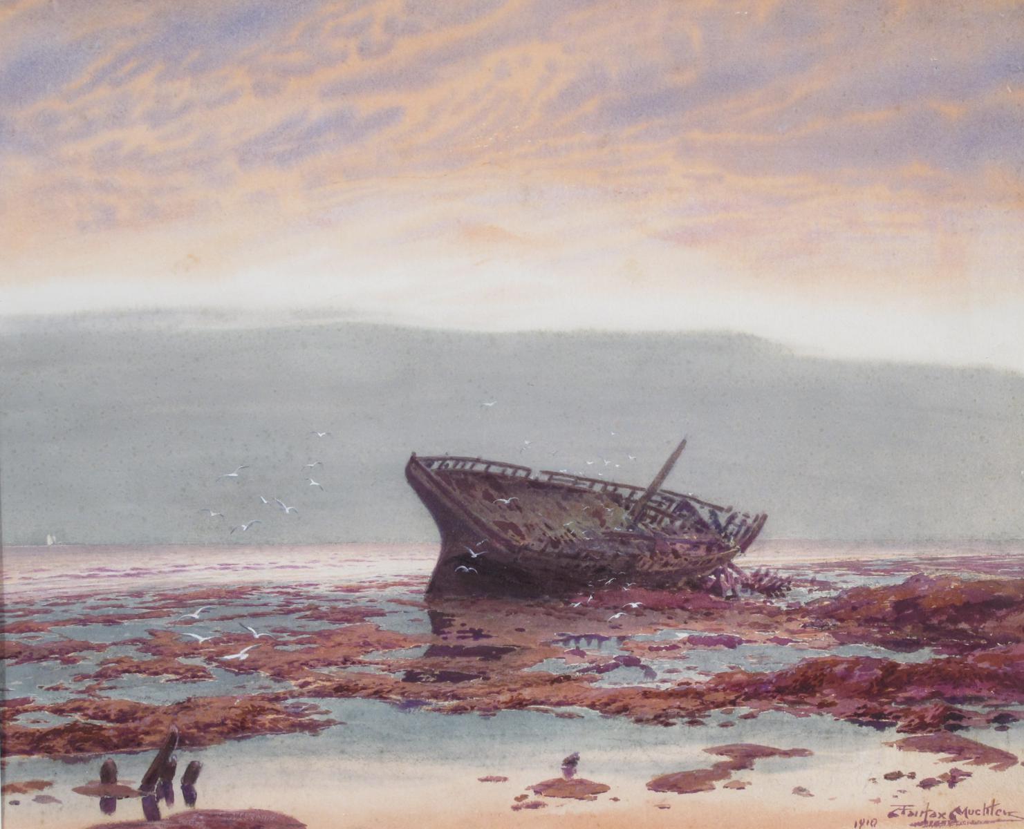 Louis Fairfax Muckley (1862-1926) Coastal scene with wreck Signed and dated 1910 Watercolour 41 x 51cm; 16 x 20in