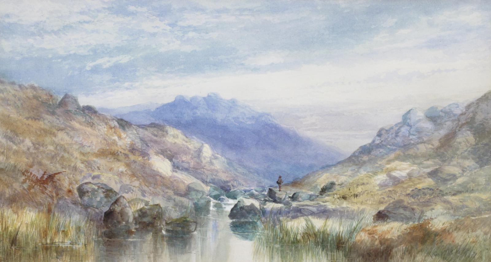 William Widgery (1922-1893) The Valley of the Tavy, Dartmoor Signed and titled on a label verso Watercolour 26 x 49cm; 10¼ x 19¼in