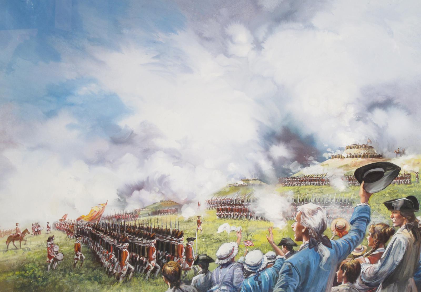 **AMENDMENT**English School 20th Century Battle of Bunker Hill 1775, based loosely on the original by Howard Pyle 1898, Gouache 49 x 71cm; 19½ x 28in