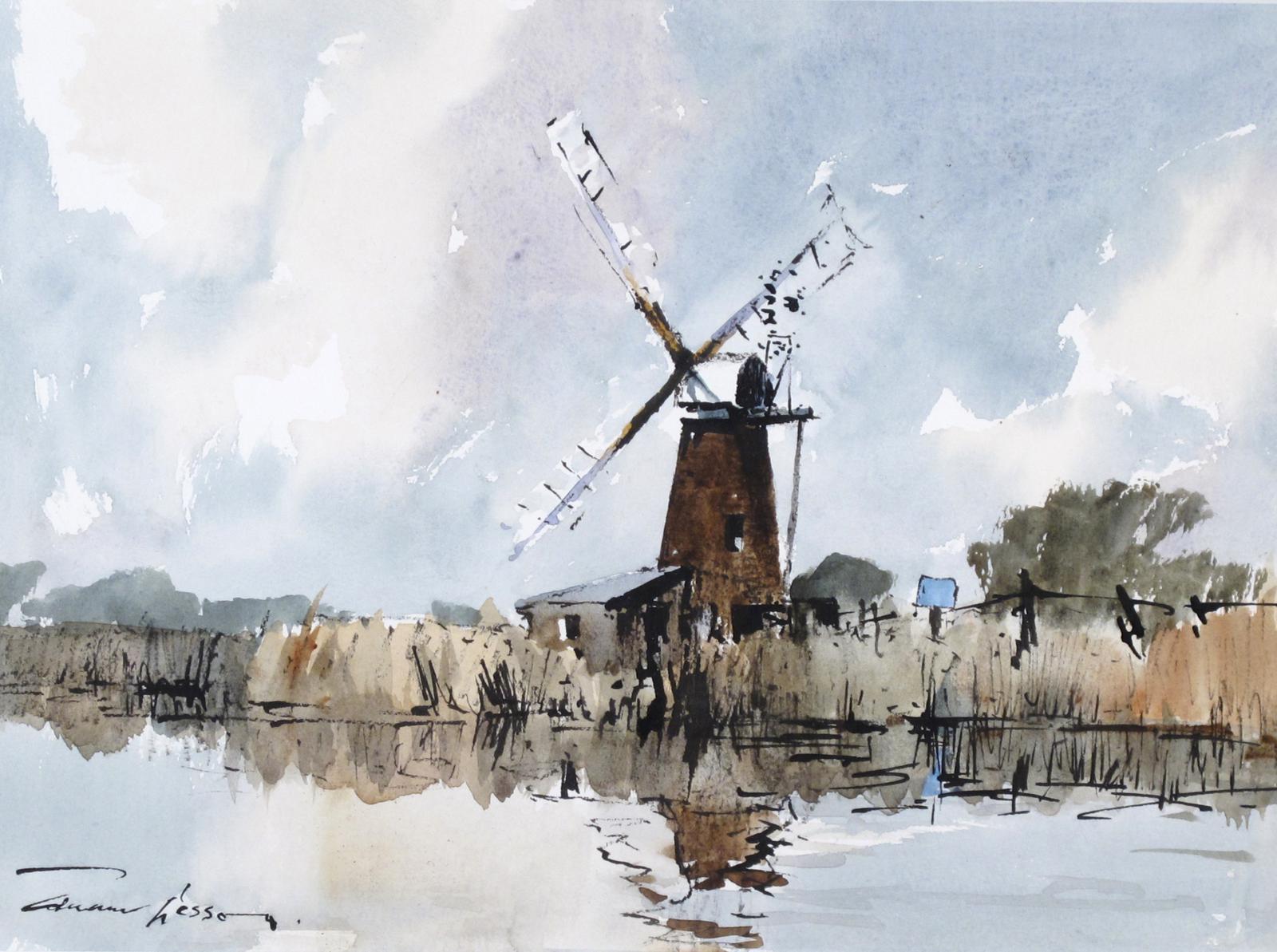 Edward Wesson (1910-1983) Norfolk Windmill Signed Watercolour 24.5 x 34.5cm; 9¾ x 13½in