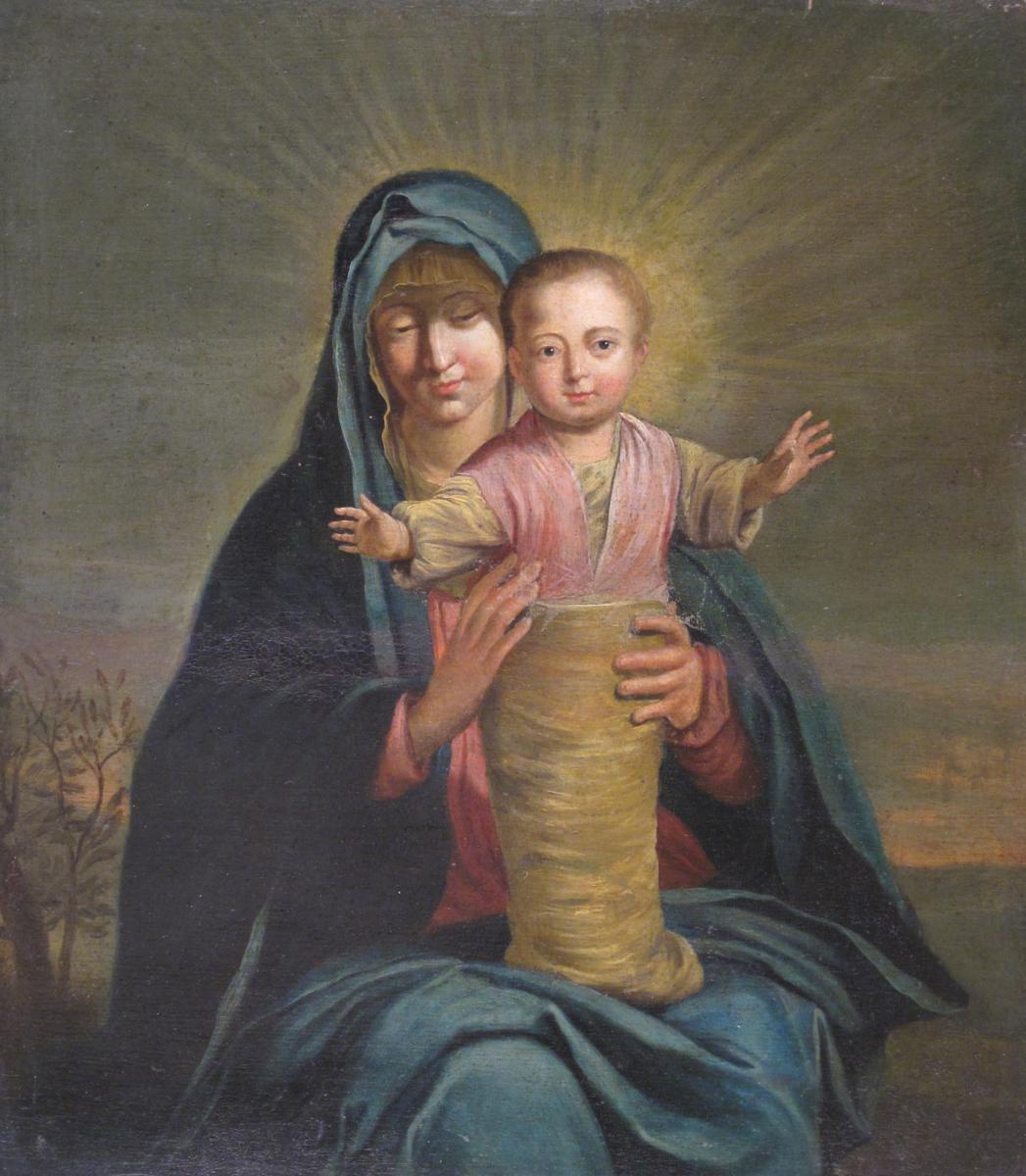 Follower of Giovanni Battista Salvi (Il Sassoferrato) Madonna and child Oil on panel 35 x 30.5cm; 13¾ x 12in