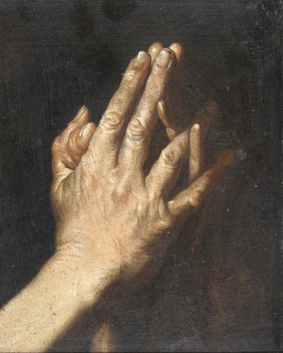 Attributed to Francesco Fracanzano (Italian 1612-1656) Study of hands in prayer Oil on canvas laid down on panel 29.5 x 23.5cm; 11½ x 9¼in