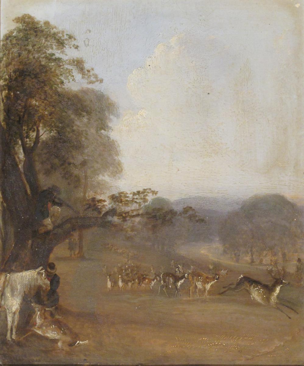 J. Sargeant (19th Century) Deer in a park Signed and dated indistinctly Oil on panel 32 x 26cm;...