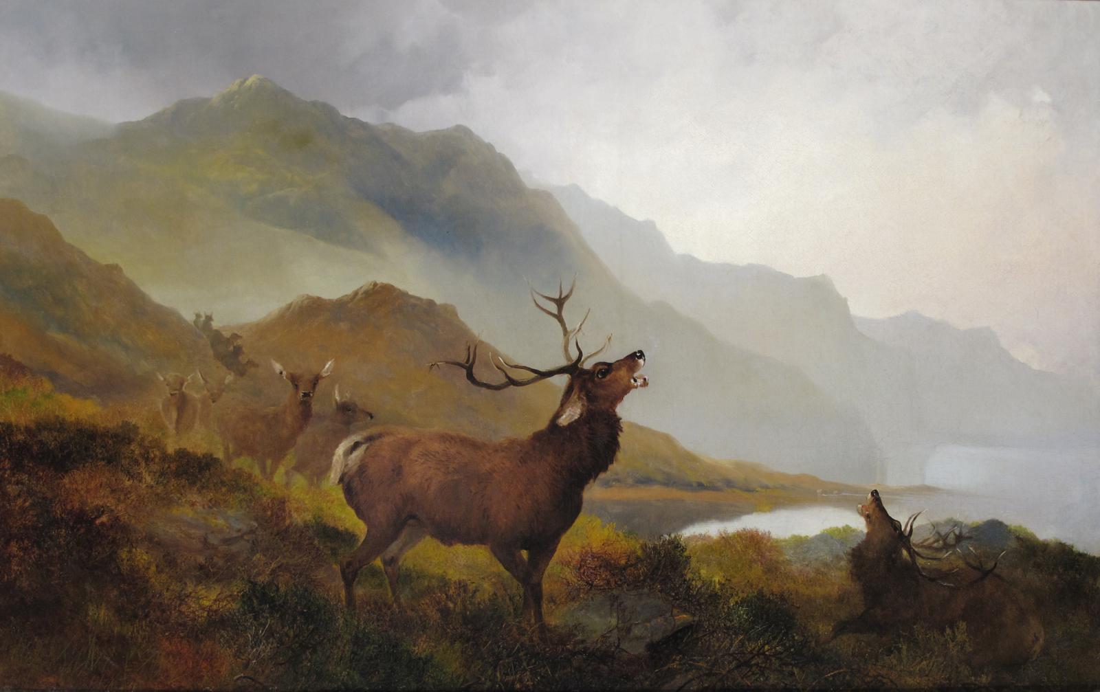 J. H. Gibb (19th Century) Deer in the highlands Signed and dated 1883 Oil on canvas 74 x 102cm; 29 x 40in