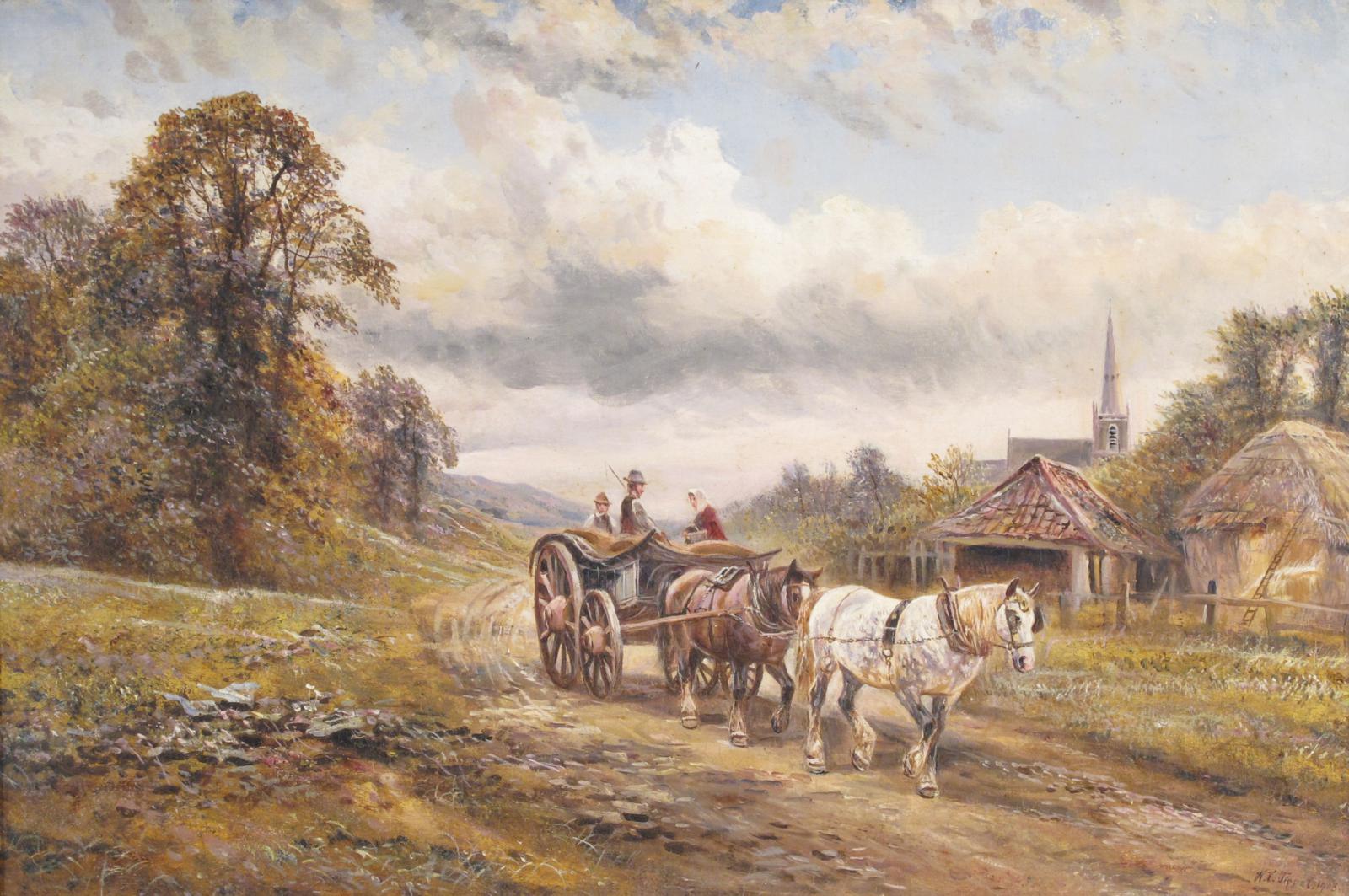 William Vivian Tippet (1833-1910) A cart and horses on a country lane Signed and dated 1903 Oil...