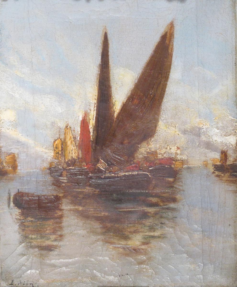 L. Nitra (19th Century) Fishing boats Signed Oil on canvas 26.5 x 21.5cm; 10½ x 8½in
