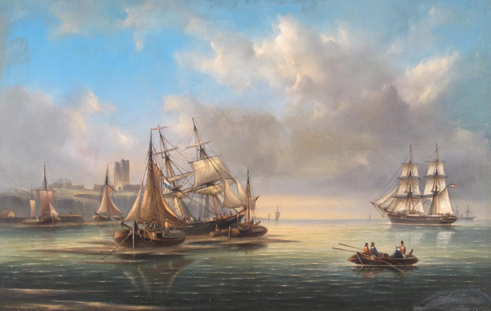 Govert Van Emerick (Dutch 1808-1882) Dutch shipping in a harbour Signed Oil on canvas 62 x 96cm; 24½ x 37¾in