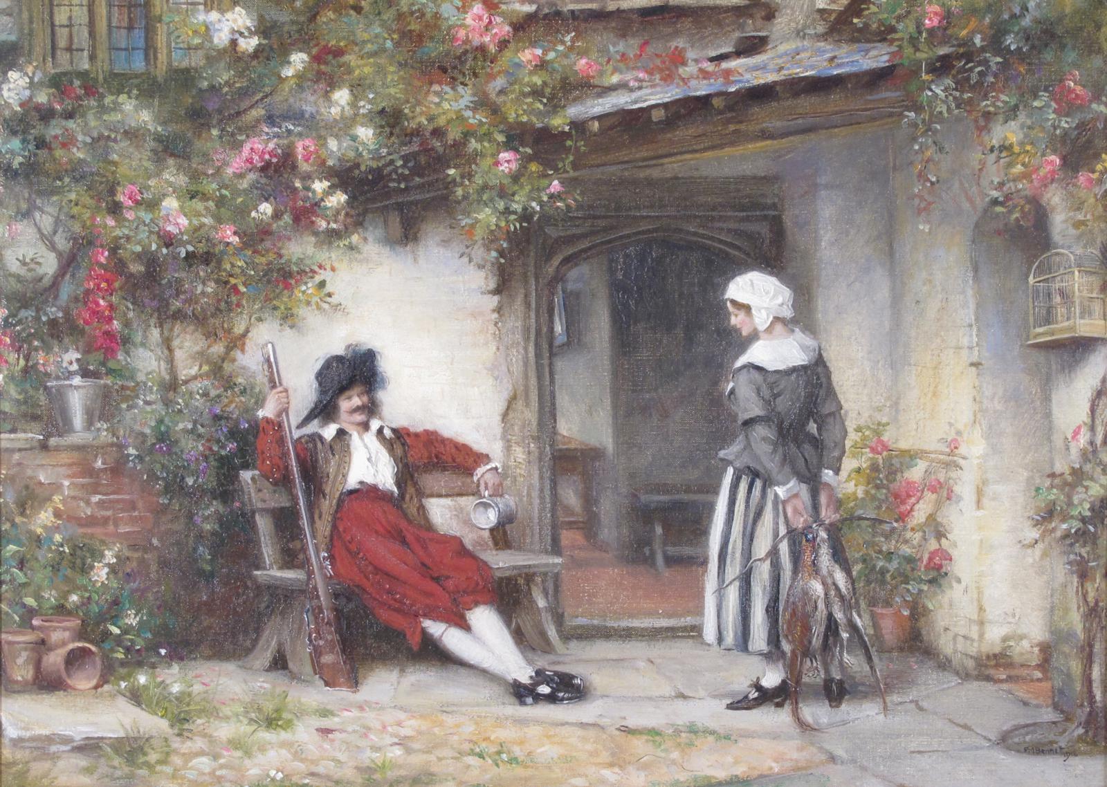 Frank Moss Bennett (1874-1953) The sportsman's rest Signed and dated 1916 Oil on canvas 25.5 x 36cm; 10 x 14in
