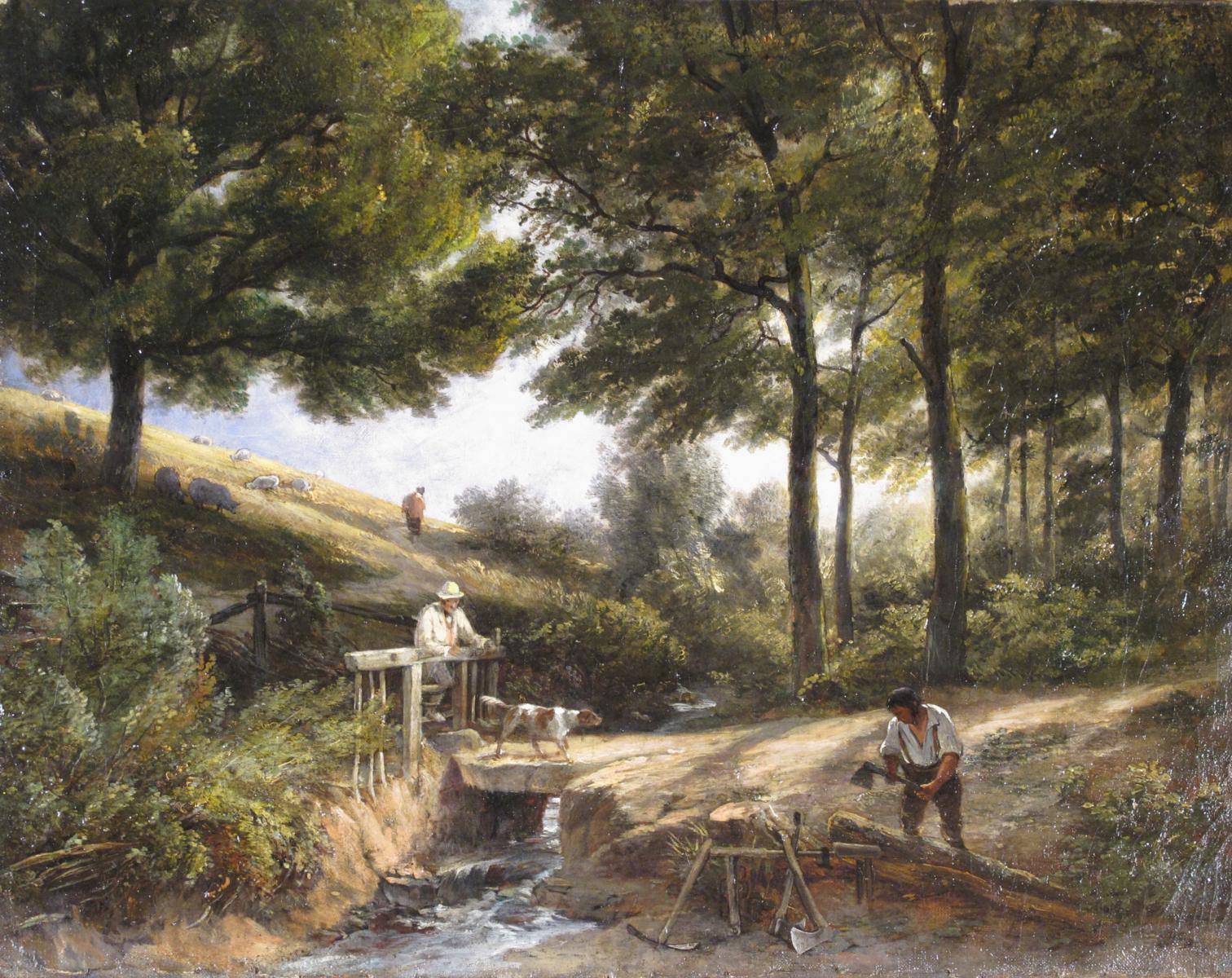 Circle of William Frederick Witherington Woodcutter by a stream Oil on canvas