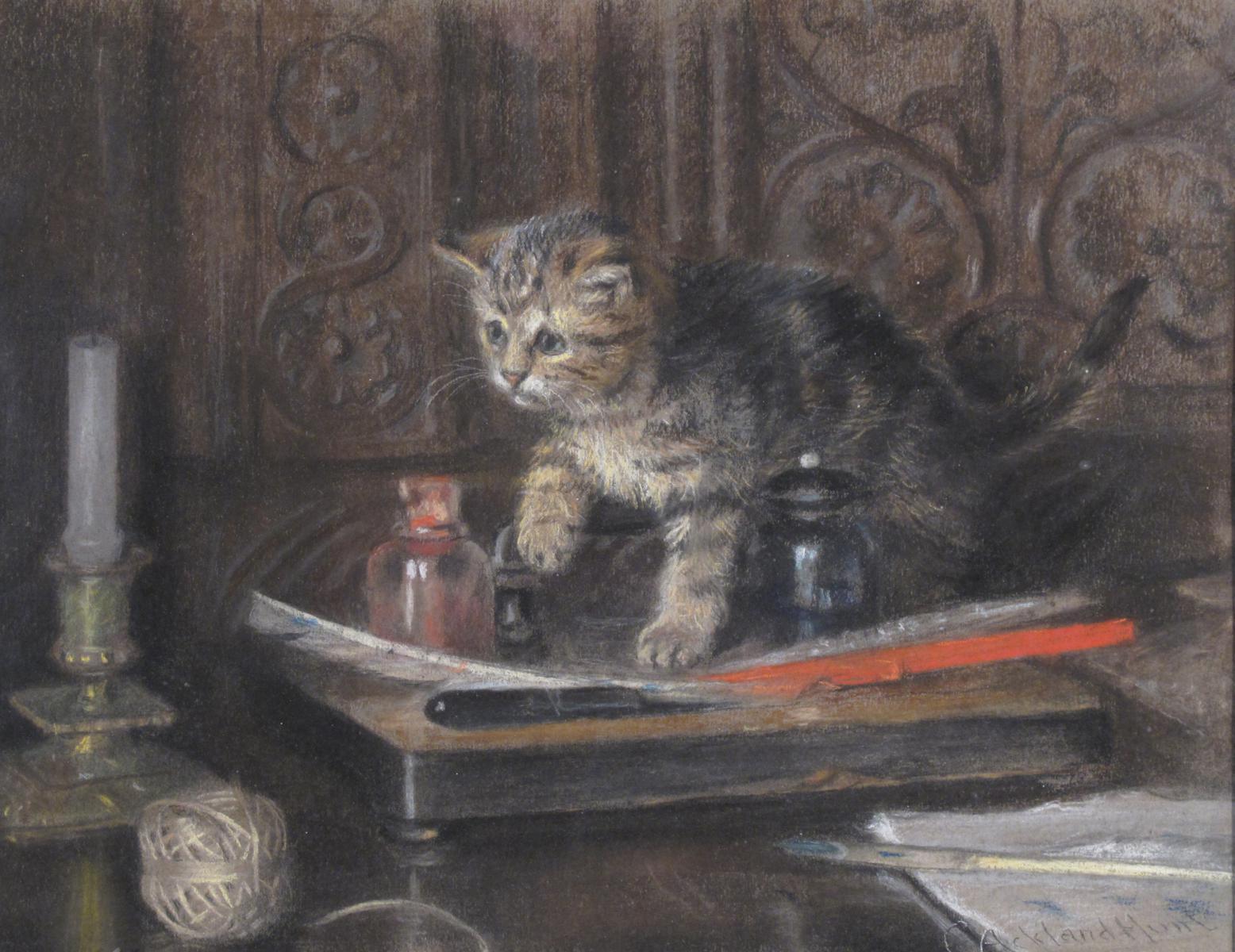 C. Ackland Hunt (early 20th Century) A mischievous kitten Signed Coloured chalk 50 x 66cm; 20 x 26in A local Salisbury artist