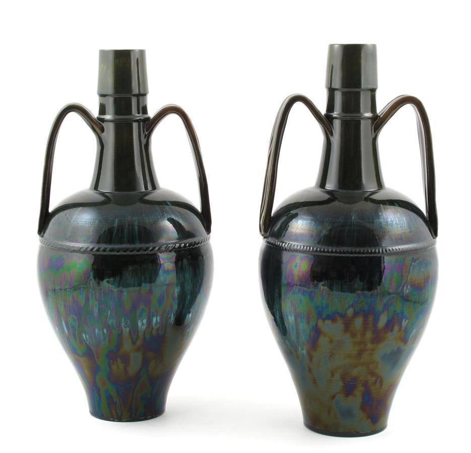 A rare pair of Linthorpe Pottery vases designed by Dr Christopher Dresser