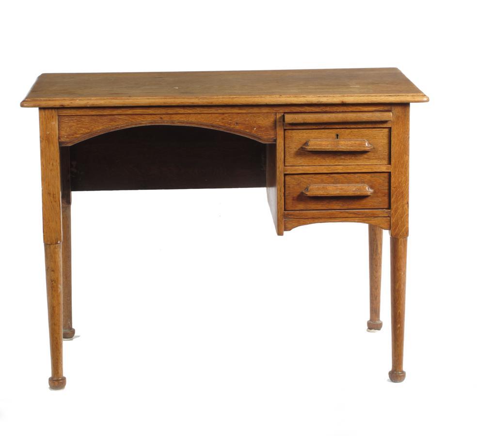 A William Birch oak desk, rectangular top, with desk slide and bank of two drawers, on turned legs unsigned 72cm. high, 96cm. wide