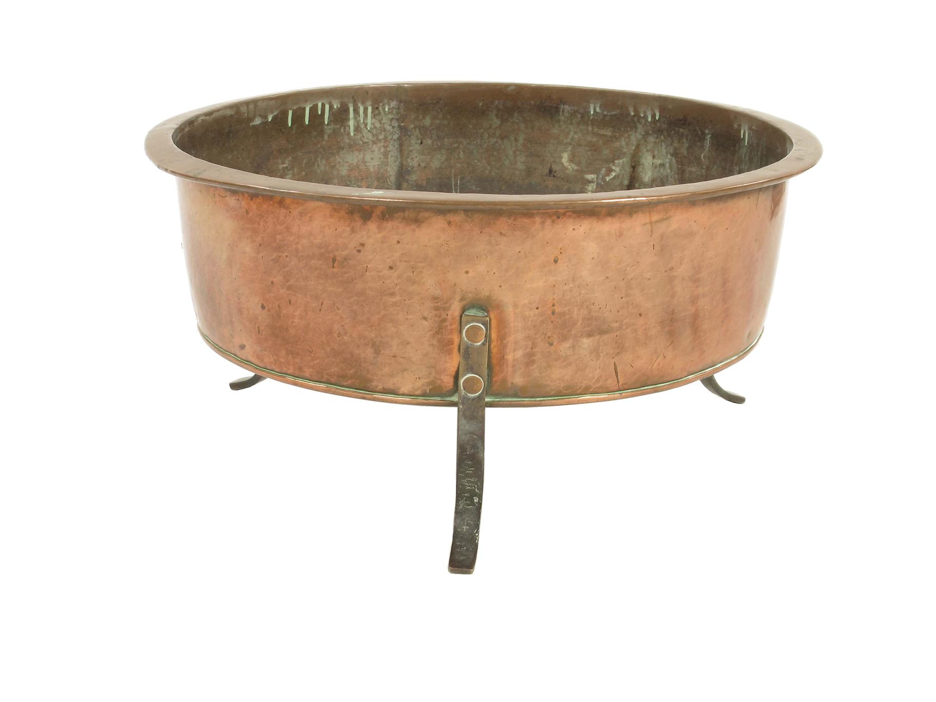 A copper circular jardiniere