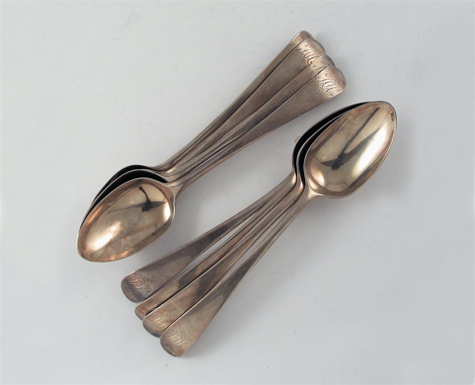 By Hester Bateman: A set of eight George III old English pattern dessert spoons