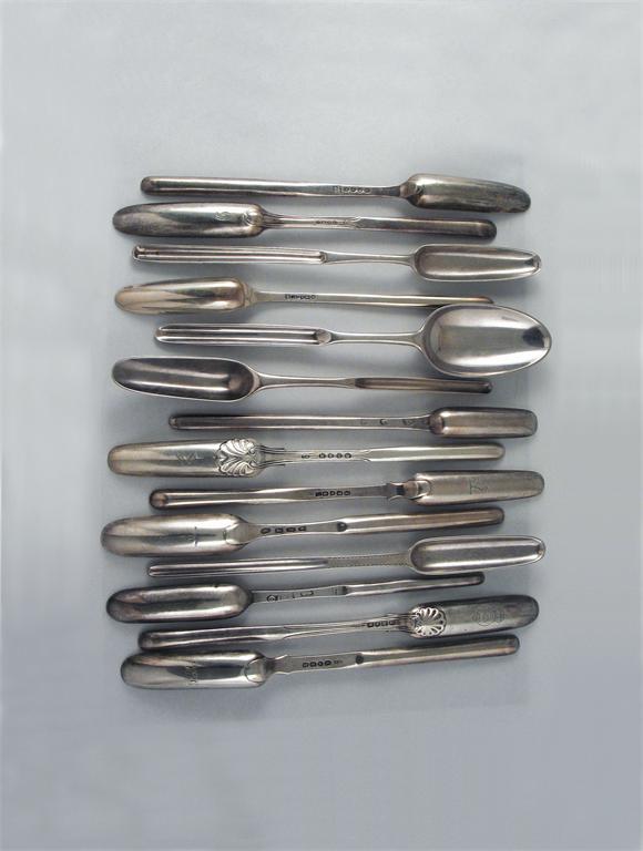 A rare Queen Ann scoop, scratched with the initials 'A P', makers mark lacking, London, 1709, 8.5in (21.5cm), 1.7oz.