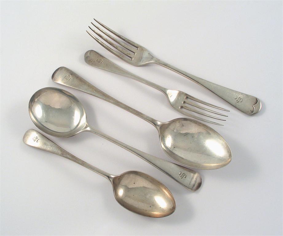 A modern half dozen service of old English pattern flatware comprising: Tablespoons Soup spoons...