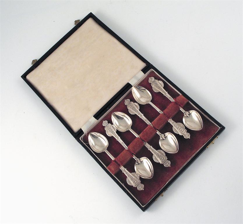 A cased set of six commemorative teaspoons