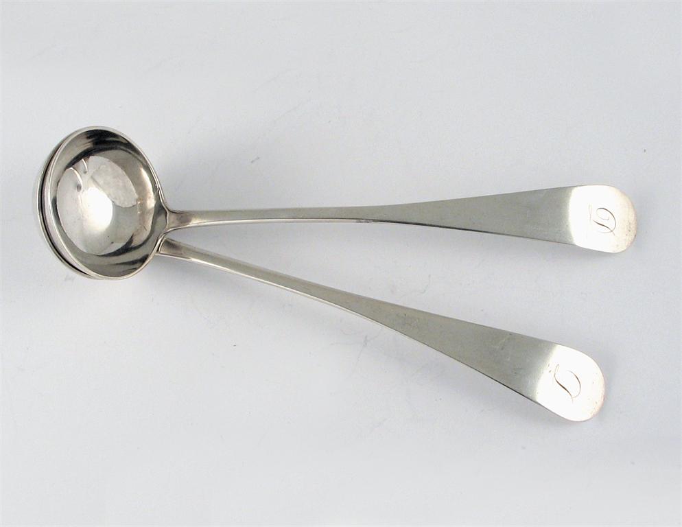 A pair of George III Scottish provincial toddy ladles, initialled 'D', by David Manson, Dundee (DM, Pot of lilies, DM), circa 1810, 1.4oz, (2).
