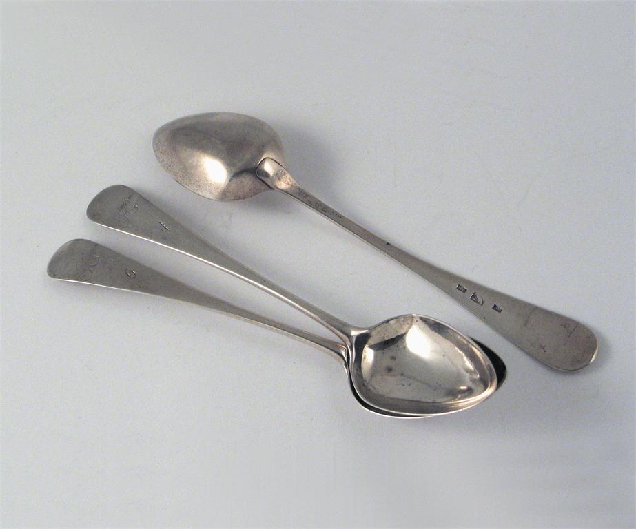 A set of three George III Scottish Provincial teaspoons, initialled 'H' and numbered '3', '4' and '6' respectively, by William Hannay, Paisley (W H, rodent, W H), 1800-1820