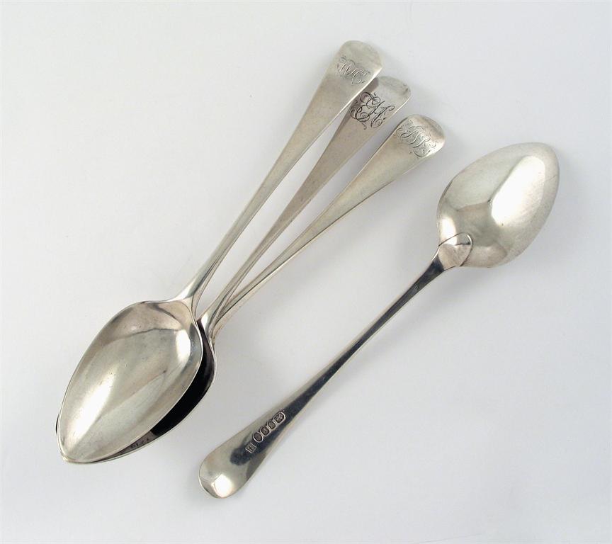 By Peter and Jonathan Bateman: Four George III old English pattern table spoons